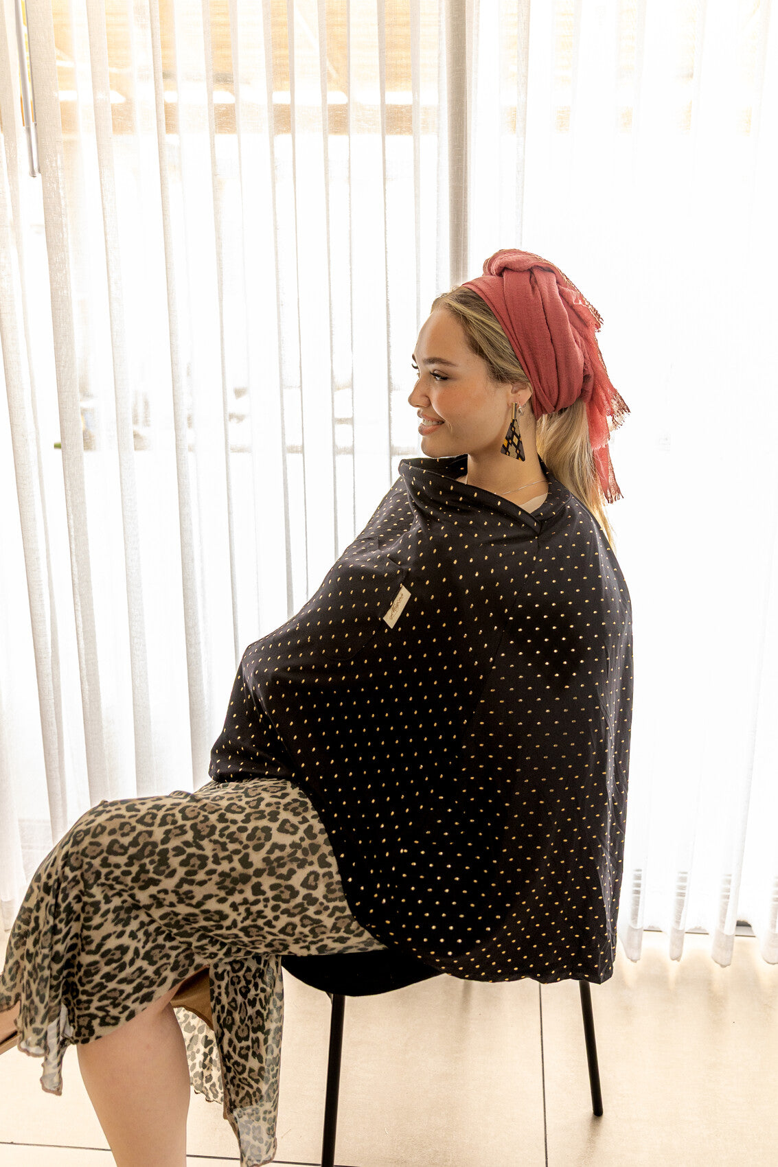 סינר סופר אלגנטי בצבע שחור דרמטי בתוספת נגיעות מוזהבות שמאירות את הפנים כשאת עוטה אותו עליך. הסינר נדיר ביופיו ומיוחד, עשוי בד סימפוניה רך ונושם לחוויית הנקה רגועה ונינוחה. הסינר המושלם להזכיר לך את היופי הנשי הייחודי ולהרגיש חופשיה להניק בביטחון